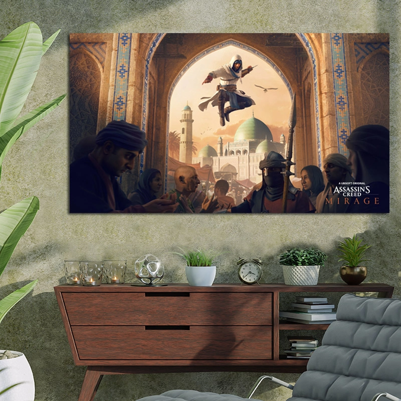 Πίνακας σε καμβα για να γεμίσει χρώματα το δωμάτιο. Οι καμβάδες με Assasin's Creed Mirage θα ζωντανέψουν το χώρο και θα δώσουν μια ευχάριστη νότα.