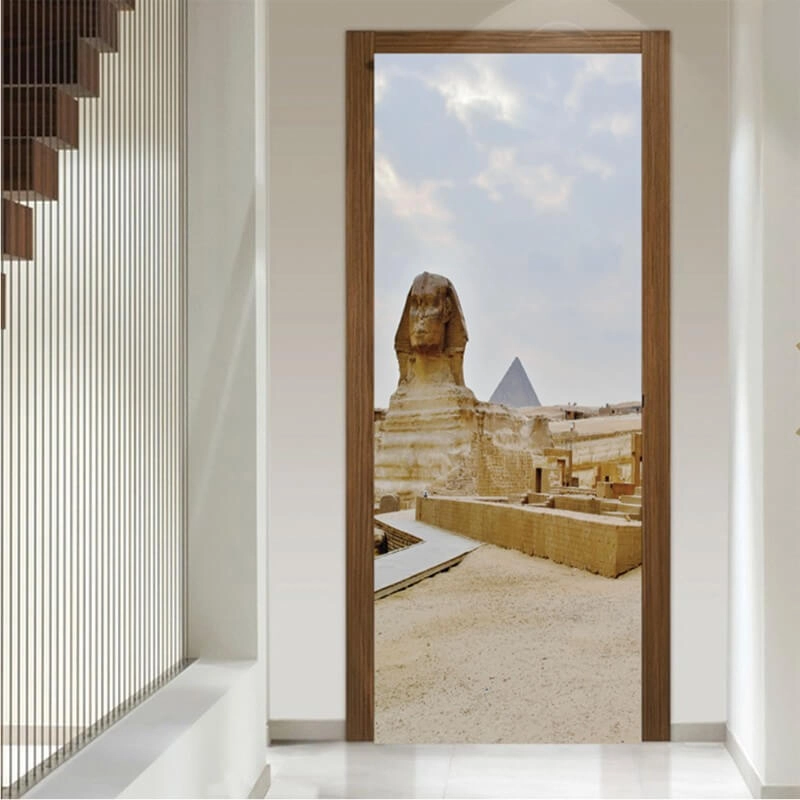 Το αυτοκόλλητο πόρτας με την Αίγυπτο, θα δώσει μία ευχάριστη πνοή ανανέωσης στην ατμόσφαιρα του σπιτιού σας και θα μετατρέψουν την πόρτες σας σε έργο τέχνης. Χρώματα και σχέδια εντυπωσιακά, σε μικρές, μεγάλες ή υπερμεγέθεις διαστάσεις που θα καταπλήξουν εσάς και τους αγαπημένους σας.