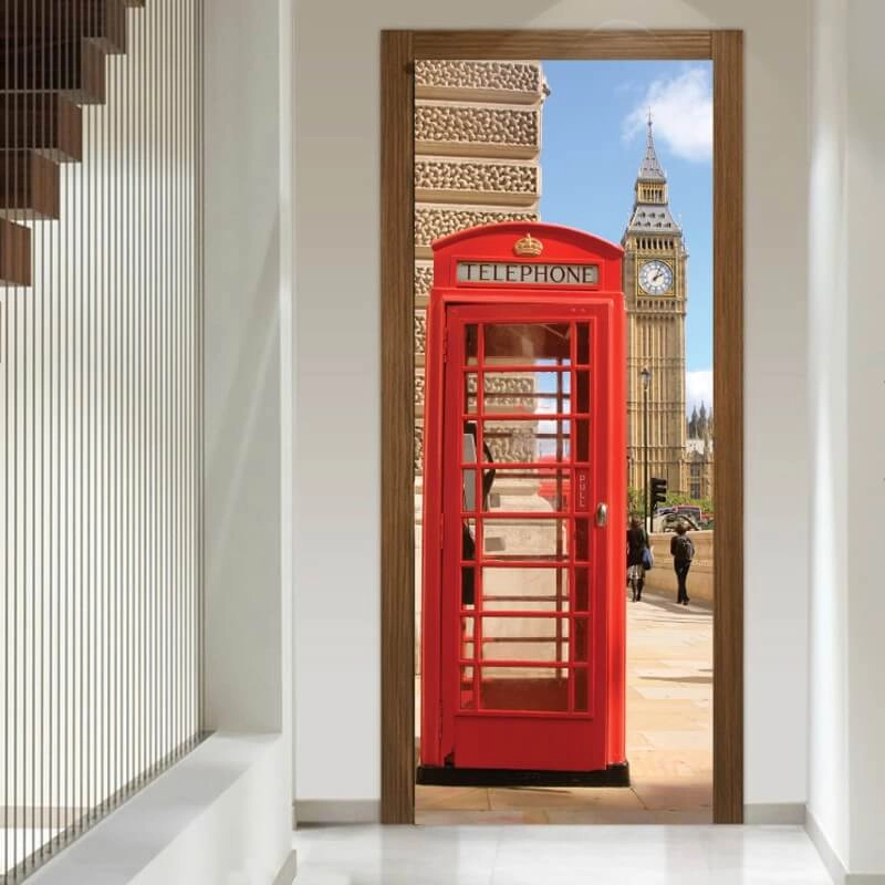Το αυτοκόλλητο πόρτας με τηλεφωνικό θάλαμο, θα δώσει μία ευχάριστη πνοή ανανέωσης στην ατμόσφαιρα του σπιτιού σας και θα μετατρέψουν την πόρτες σας σε έργο τέχνης. Χρώματα και σχέδια εντυπωσιακά, σε μικρές, μεγάλες ή υπερμεγέθεις διαστάσεις που θα καταπλήξουν εσάς και τους αγαπημένους σας.