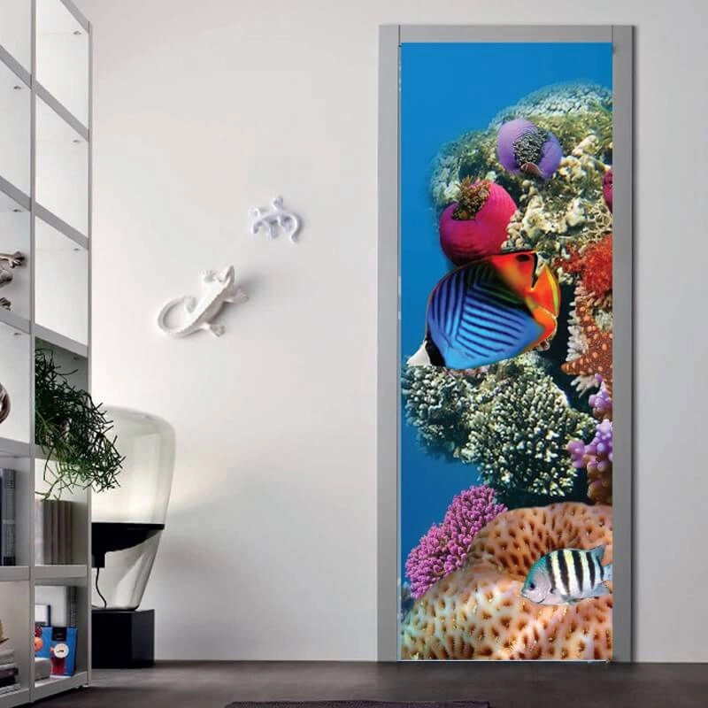 Το αυτοκόλλητο πόρτας με βυθό, θα δώσει μία ευχάριστη πνοή ανανέωσης στην ατμόσφαιρα του σπιτιού σας και θα μετατρέψουν την πόρτες σας σε έργο τέχνης. Χρώματα και σχέδια εντυπωσιακά, σε μικρές, μεγάλες ή υπερμεγέθεις διαστάσεις που θα καταπλήξουν εσάς και τους αγαπημένους σας.