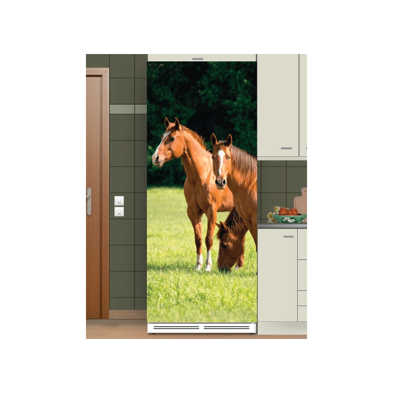 Τα αυτοκόλλητα ψυγείου με άλογα θα δώσουν μία ευχάριστη πνοή ανανέωσης στην ατμόσφαιρα του σπιτιού σας και θα μετατρέψουν το ψυγείο σας σε έργο τέχνης. Χρώματα και σχέδια εντυπωσιακά, σε μικρές, μεγάλες ή υπερμεγέθεις διαστάσεις που θα καταπλήξουν εσάς και τους αγαπημένους σας.