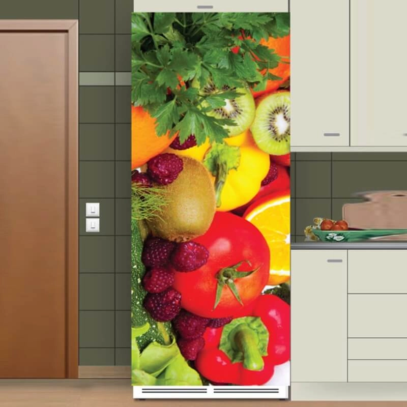 Τα αυτοκόλλητα ψυγείου με φρούτα και λαχανικά θα δώσουν μία ευχάριστη πνοή ανανέωσης στην ατμόσφαιρα του σπιτιού σας και θα μετατρέψουν το ψυγείο σας σε έργο τέχνης. Χρώματα και σχέδια εντυπωσιακά, σε μικρές, μεγάλες ή υπερμεγέθεις διαστάσεις που θα καταπλήξουν εσάς και τους αγαπημένους σας.