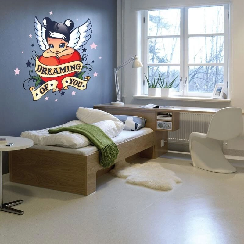 Πληροφορίες: Αυτοκόλλητο τοίχου dreaming you με μοντέρνο σχέδιο που χαρίζει ζωντάνια, φρεσκάρει και αλλάζει εντυπωσιακά το δωμάτιο που θα το τοποθετήσετε. Το αυτοκόλλητο είναι λεπτό και μαλακό, φαίνεται στο τοίχο σαν ζωγραφιά και όταν εσείς θέλετε το ξεκολλάτε εύκολα, δεν αφήνει κατάλοιπα κόλλας και δεν χαλάει το βάψιμο στον τοίχο.