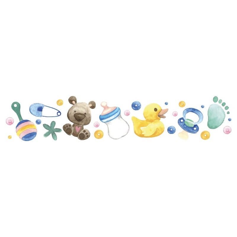 Προετοιμασία: Βεβαιωθείτε ότι η επιφάνεια στην οποία θα επικολλήσετε το Αυτοκόλλητο τοίχου Παιχνίδια Μωρού, είναι αρκετά ομαλή.