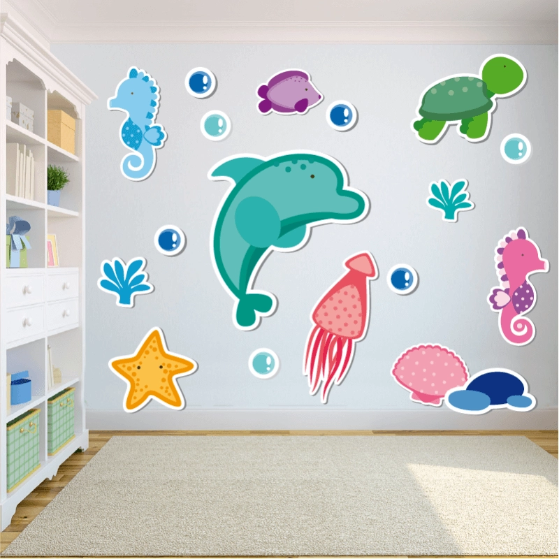 Πληροφορίες: Αυτοκόλλητο τοίχου για παιδικό δωμάτιο Χαριτωμένα ζωάκια της θάλασσας εντυπωσιακά το δωμάτιο που θα το τοποθετήσετε. Το αυτοκόλλητο είναι λεπτό και μαλακό, φαίνεται στο τοίχο σαν ζωγραφιά και όταν εσείς θέλετε το ξεκολλάτε εύκολα, δεν αφήνει κατάλοιπα κόλλας και δεν χαλάει το βάψιμο στον τοίχο.