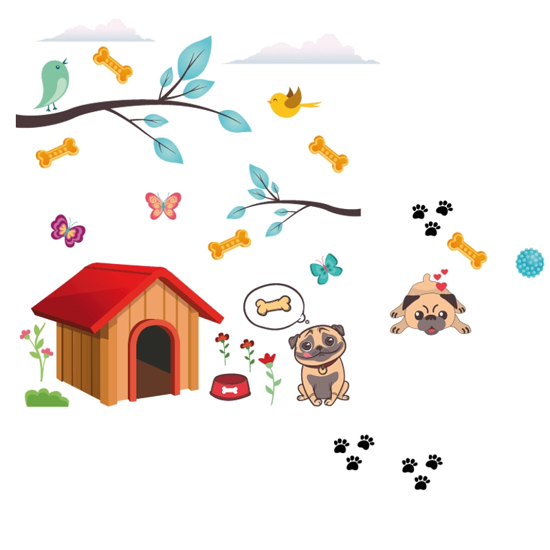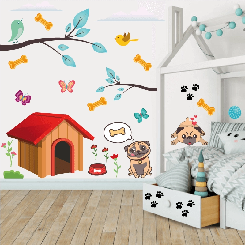 Πληροφορίες: Αυτοκολλητο τοίχου με Σκυλάκια με χαρούμενο σχέδιο που χαρίζει ζωντάνια, φρεσκάρει και αλλάζει εντυπωσιακά το δωμάτιο που θα το τοποθετήσετε. Το αυτοκόλλητο είναι λεπτό και μαλακό, φαίνεται στο τοίχο σαν ζωγραφιά και όταν εσείς θέλετε το ξεκολλάτε εύκολα, δεν αφήνει κατάλοιπα κόλλας και δεν χαλάει το βάψιμο στον τοίχο.