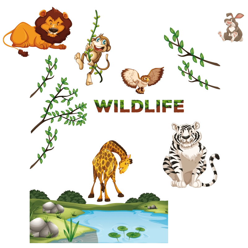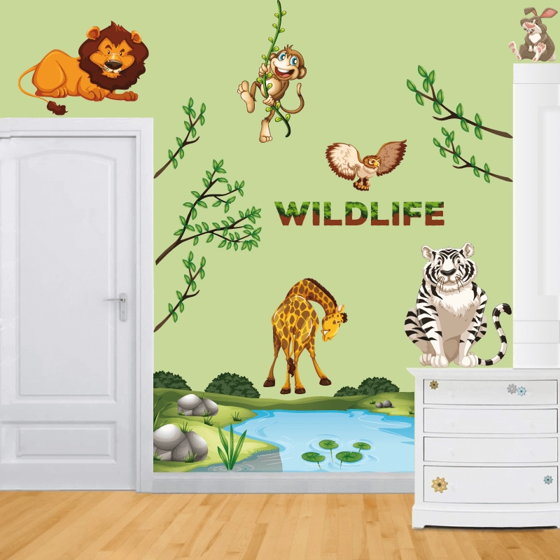 Προετοιμασια: Βεβαιωθείτε ότι η επιφάνεια στην οποία θα επικολλήσετε τα Αυτοκολλητο τοίχου με Ζώα της Ζούγκλας, είναι αρκετά ομαλή.