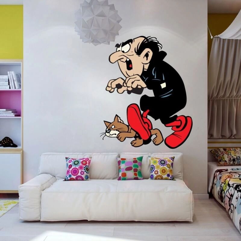 - Επιλέξτε το σημείο που θέλετε να τοποθετήσετε το αυτοκόλλητο για παιδικό δωμάτιο με δρακουμέλ και ψιψινέλ stickerman και χωρίς να το ανοίξετε (με το φύλλο μεταφοράς και το χαρτί στήριξης) τοποθετήστε το στο σημείο που επιλέξατε.