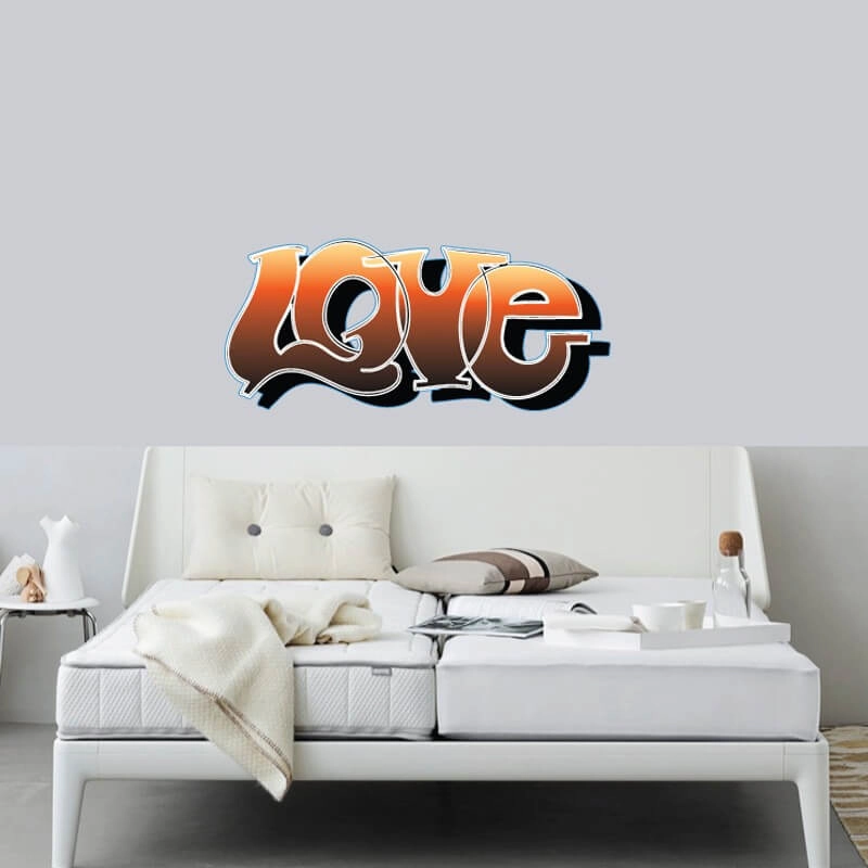 Προετοιμασια: Βεβαιωθείτε ότι η επιφάνεια στην οποία θα επικολλήσετε τα αυτοκόλλητα τοίχου γκράφιτι - Love, είναι αρκετά ομαλή.