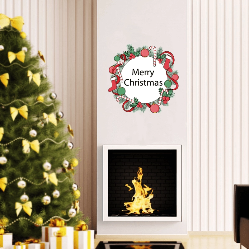 Πληροφορίες: Αυτοκόλλητο τοίχου με το στεφάνι με στολίδια και ευχές θα εντυπωσιάσει το δωμάτιο που θα το τοποθετήσετε. Το αυτοκόλλητο είναι λεπτό και μαλακό, φαίνεται στο τοίχο σαν ζωγραφιά και όταν εσείς θέλετε το ξεκολλάτε εύκολα, δεν αφήνει κατάλοιπα κόλλας και δεν χαλάει το βάψιμο στον τοίχο.