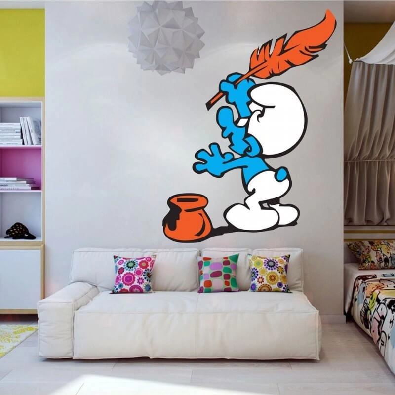 Προετοιμασια: Βεβαιωθείτε ότι η επιφάνεια στην οποία θα επικολλήσετε το αυτοκόλλητο για παιδικό δωμάτιο στρουμφάκι καλλιτέχνης, είναι αρκετά ομαλή.