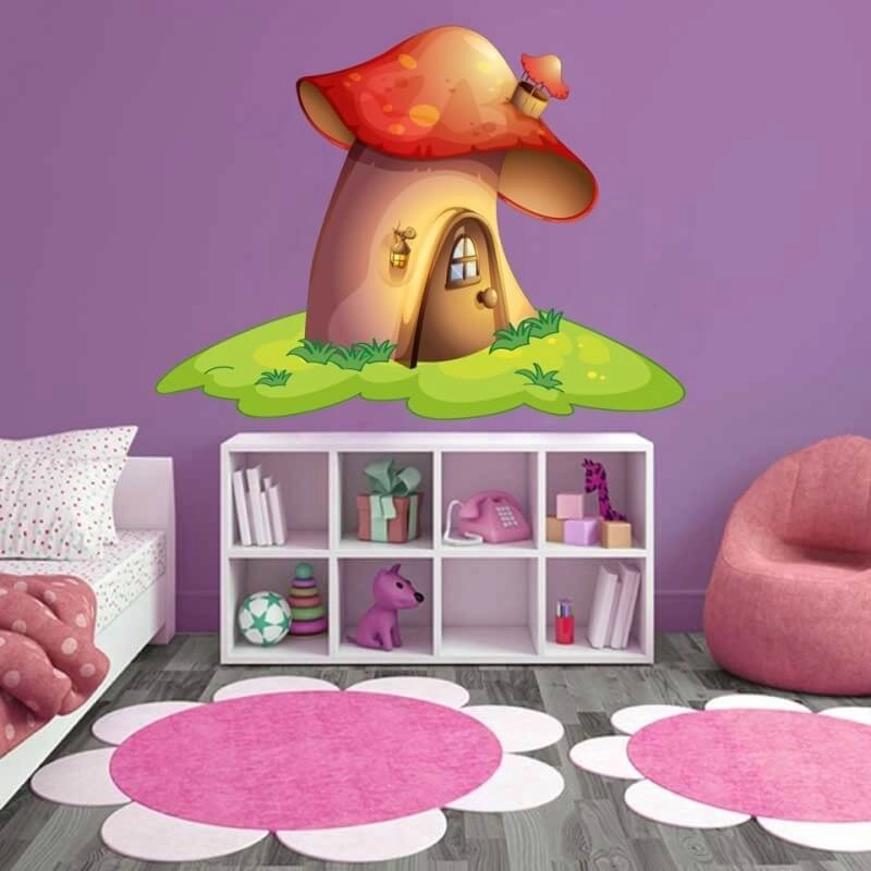 Προετοιμασια: Βεβαιωθείτε ότι η επιφάνεια στην οποία θα επικολλήσετε το αυτοκόλλητο για παιδικό δωμάτιο το σπιτάκι των στρουμφ, είναι αρκετά ομαλή.