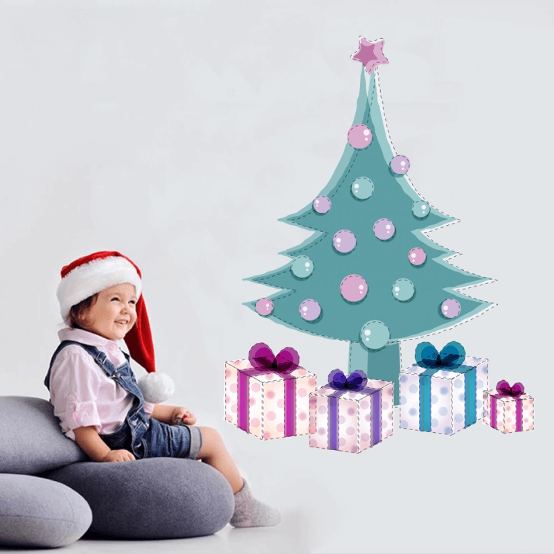 Πληροφορίες: Αυτοκόλλητο τοίχου με το Xριστουγεννιάτικο δέντρο με παλ δωράκια θα εντυπωσιάσει το δωμάτιο που θα το τοποθετήσετε. Το αυτοκόλλητο είναι λεπτό και μαλακό, φαίνεται στο τοίχο σαν ζωγραφιά και όταν εσείς θέλετε το ξεκολλάτε εύκολα, δεν αφήνει κατάλοιπα κόλλας και δεν χαλάει το βάψιμο στον τοίχο.