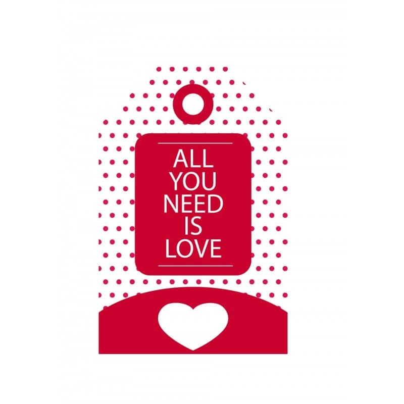 Προετοιμασια: Βεβαιωθείτε ότι η επιφάνεια στην οποία θα επικολλήσετε το αυτοκόλλητο βιτρίνας All you need Is love, είναι αρκετά ομαλή.