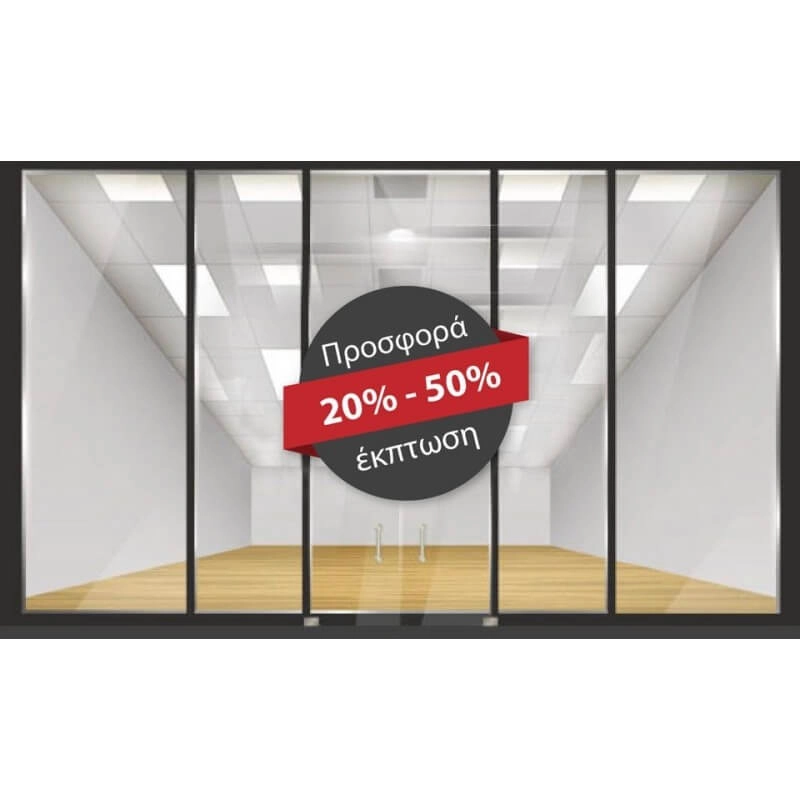 Οδηγίες τοποθέτησης για το εκπτωτικό αυτοκόλλητο βιτρίνας εκπτώσεις Έκπτωση 20%-50%