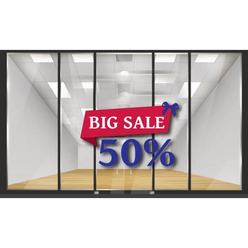 Πληροφορίες: Το εκπτωτικό αυτοκόλλητο βιτρίνας Big Sale 50% θα εντυπωσιάσει τη βιτρίνα που θα το τοποθετήσετε. Το αυτοκόλλητο είναι λεπτό και μαλακό, φαίνεται στη βιτρίνα σα ζωγραφιά κι όταν εσείς θέλετε, το ξεκολλάτε εύκολα χωρίς να αφήνει κατάλοιπα κόλλας.