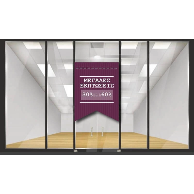 Οδηγίες τοποθέτησης για το εκπτωτικό αυτοκόλλητο βιτρίνας Έκπτωσεις 30% - 60%