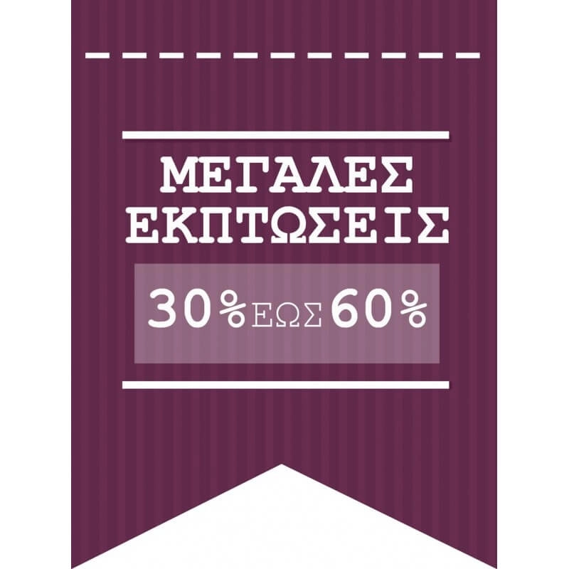 Πληροφορίες: Το εκπτωτικό αυτοκόλλητο βιτρίνας με έκπτωση 30% - 60% θα εντυπωσιάσει τη βιτρίνα που θα το τοποθετήσετε. Το αυτοκόλλητο είναι λεπτό και μαλακό, φαίνεται στη βιτρίνα σα ζωγραφιά κι όταν εσείς θέλετε, το ξεκολλάτε εύκολα χωρίς να αφήνει κατάλοιπα κόλλας.