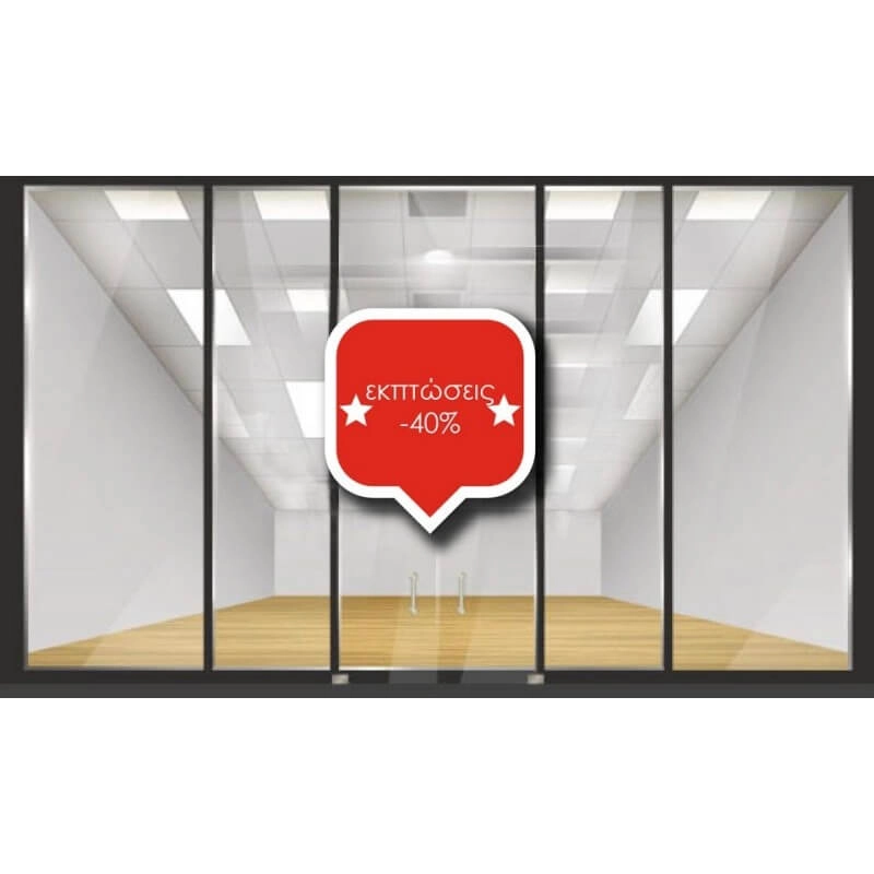 Οδηγίες τοποθέτησης για το εκπτωτικό αυτοκόλλητο βιτρίνας Εκπτώσεις -40%