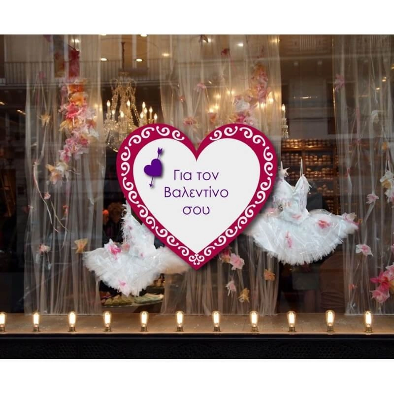 Πληροφορίες: Το αυτοκόλλητο βιτρίνας Για τον Βαλεντίνο σου θα εντυπωσιάσει τη βιτρίνα που θα το τοποθετήσετε. Το αυτοκόλλητο είναι λεπτό και μαλακό, φαίνεται στη βιτρίνα σα ζωγραφιά κι όταν εσείς θέλετε, το ξεκολλάτε εύκολα χωρίς να αφήνει κατάλοιπα κόλλας.
