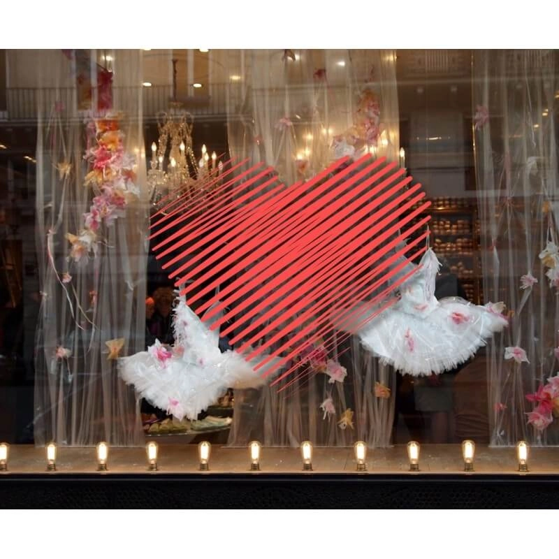 - Στηρίξτε το στη θέση που τελικά επιλέξατε για το αυτοκόλλητο βιτρίνας Καρδιά με γραμμές, με 2 κομμάτια χαρτοταινίας δεξιά και αριστερά λίγο πιο κάτω από την κορυφή του.