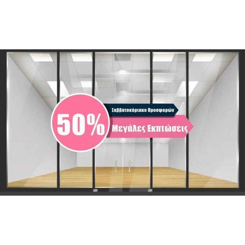 Οδηγίες τοποθέτησης για το εκπτωτικό αυτοκόλλητο βιτρίνας Σαββατοκύριακο Προσφορών