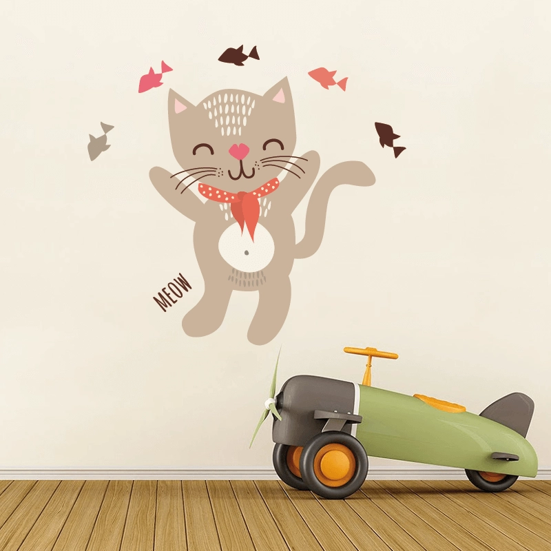 Πληροφορίες: Αυτοκόλλητο τοίχου για παιδικό δωμάτιο γάτα με ψαράκια εντυπωσιακά το δωμάτιο που θα το τοποθετήσετε. Το αυτοκόλλητο είναι λεπτό και μαλακό, φαίνεται στο τοίχο σαν ζωγραφιά και όταν εσείς θέλετε το ξεκολλάτε εύκολα, δεν αφήνει κατάλοιπα κόλλας και δεν χαλάει το βάψιμο στον τοίχο.