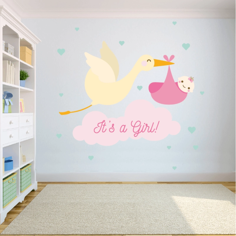 Προετοιμασια: Βεβαιωθείτε ότι η επιφάνεια στην οποία θα επικολλήσετε το αυτοκόλλητο για παιδικό δωμάτιο its a girl με πελεκάνο, είναι αρκετά ομαλή.