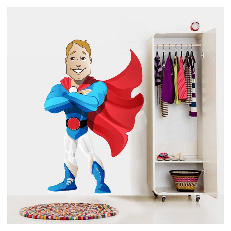 Προετοιμασια: Βεβαιωθείτε ότι η επιφάνεια στην οποία θα επικολλήσετε το αυτοκόλλητο τοίχου με τον γαλάζιο Stickerman, είναι αρκετά ομαλή.