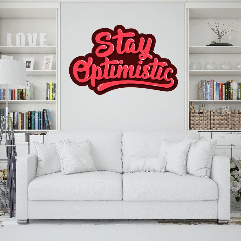 Στο Stickerman θα βρείτε το αγαπημένο σας σχέδιο Αυτοκόλλητα τοίχου με Φράσεις Stay optimistic στις διαστάσεις και το υλικό που επιθυμείτε. Εφόσον το επιτρέπει η ανάλυση της φωτογραφίας Αυτοκόλλητα τοίχου με Φράσεις Stay optimistic που έχουμε στην τεράστια συλλογή μας, μπορεί να εκτυπωθεί σε Παραβάν, Ταπετσαρία, Αυτοκόλλητο, Πίνακα, Κούπα, Ρολοκουρτίνα.