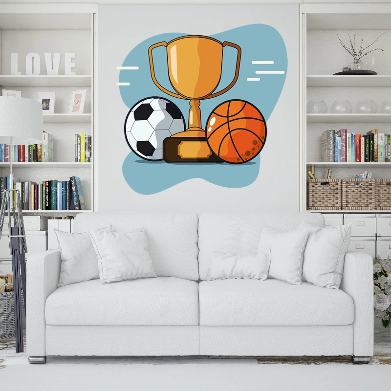 Αυτοκόλλητα τοίχου με Sports Trophy with basket and soccer ball
