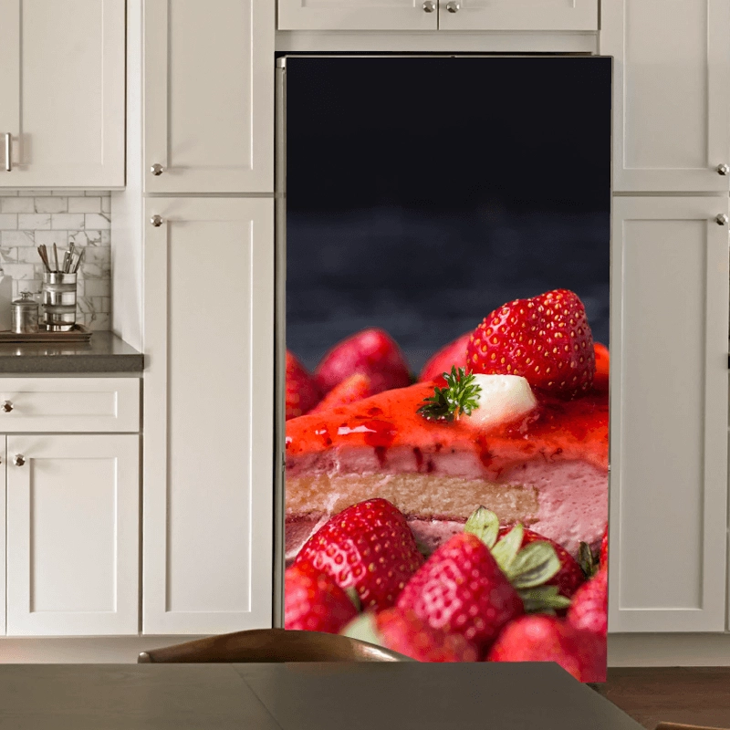 Τα αυτοκόλλητα ψυγείου Τούρτα φράουλας θα δώσουν μία ευχάριστη πνοή ανανέωσης στην ατμόσφαιρα του σπιτιού σας και θα μετατρέψουν το ψυγείο σας σε έργο τέχνης. Χρώματα και σχέδια εντυπωσιακά, σε μικρές, μεγάλες ή υπερμεγέθεις διαστάσεις που θα καταπλήξουν εσάς και τους αγαπημένους σας.