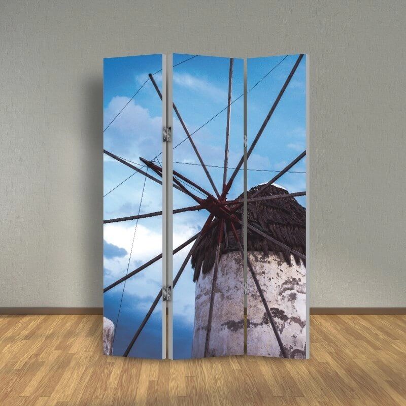 Διαρρυθμίστε έξυπνα και διακοσμήστε ταυτόχρονα τον χώρο σας με Παραβάν Μύκονος Μύλος από το Stickerman.