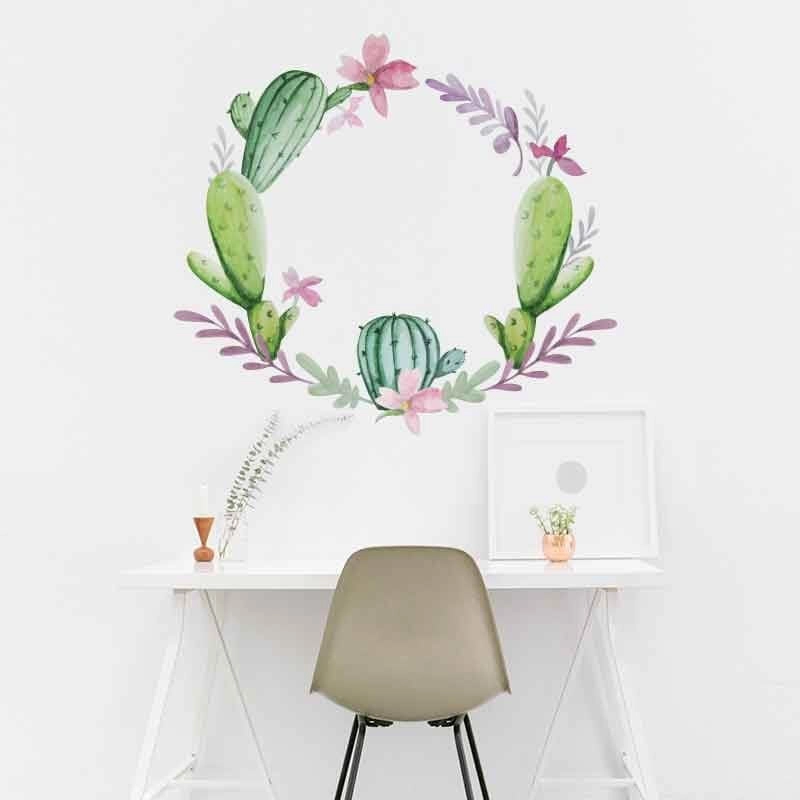 Πληροφορίες: Αυτοκόλλητο τοίχου Στεφάνι με κακτάκια με μοντέρνο σχέδιο που χαρίζει ζωντάνια, φρεσκάρει και αλλάζει εντυπωσιακά το δωμάτιο που θα το τοποθετήσετε. Το αυτοκόλλητο είναι λεπτό και μαλακό, φαίνεται στο τοίχο σαν ζωγραφιά και όταν εσείς θέλετε το ξεκολλάτε εύκολα, δεν αφήνει κατάλοιπα κόλλας και δεν χαλάει το βάψιμο στον τοίχο.