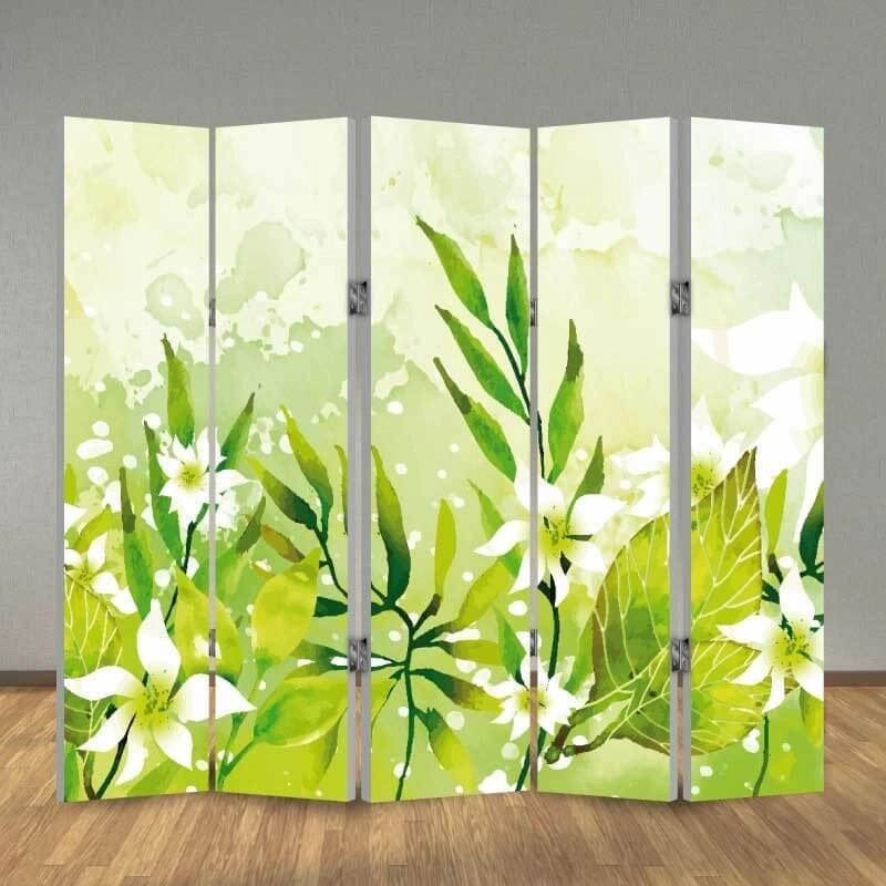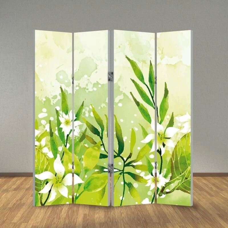 Διαρρυθμίστε έξυπνα και διακοσμήστε ταυτόχρονα τον χώρο σας με Παραβαν Πράσινο φόντο Άσπρα Λουλούδια από το Stickerman.
