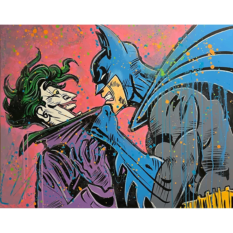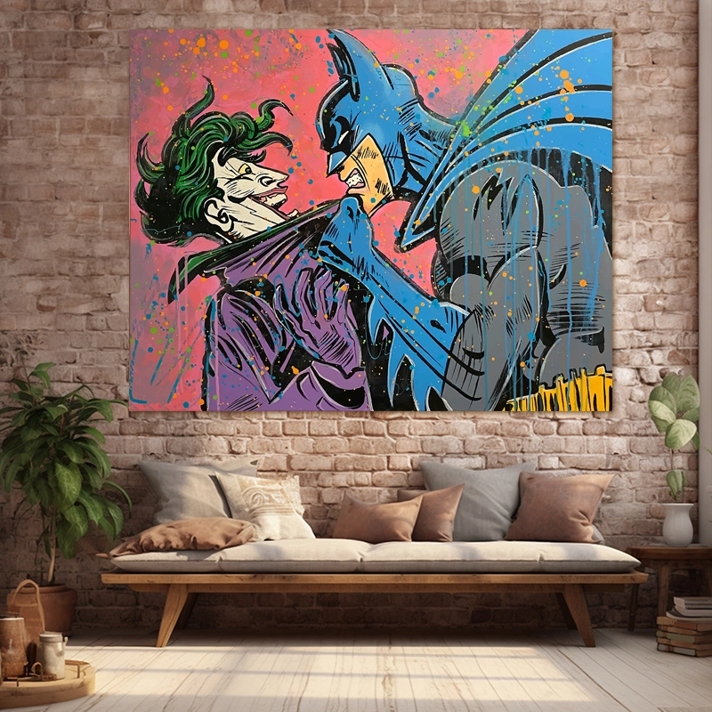 Καταδικάστε την αναταραχή στο Gotham με τον εκπληκτικό πίνακα "Batman vs Joker". Ένα επικό έργο τέχνης που αιχμαλωτίζει την αιώνια αντιπαράθεση ανάμεσα στον Σκοτεινό Ιππότη και τον Αντίπαλο του, δημιουργώντας μια ατμόσφαιρα έντασης.
