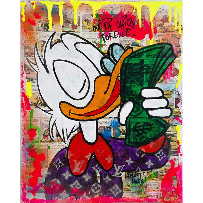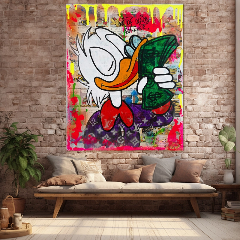 Υποδεχθείτε τον αέρα της πολυτέλειας και της επιτυχίας με τον πίνακα "Scrooge Money"! Αυτός ο εντυπωσιακός πίνακας απεικονίζει τον γνωστό χαρακτήρα Scrooge McDuck από τον κόσμο της Disney, προβάλλοντάς τον σε μια στιγμή απόλυτης επιτυχίας και πλούτου.