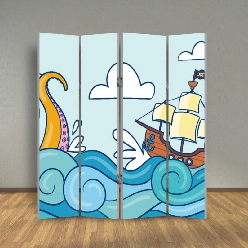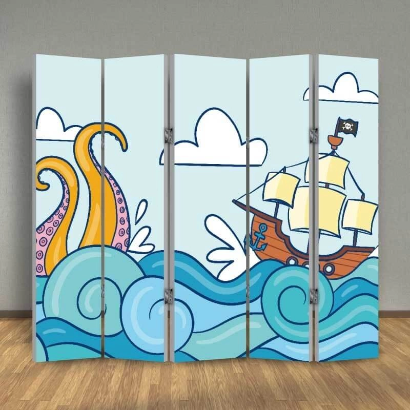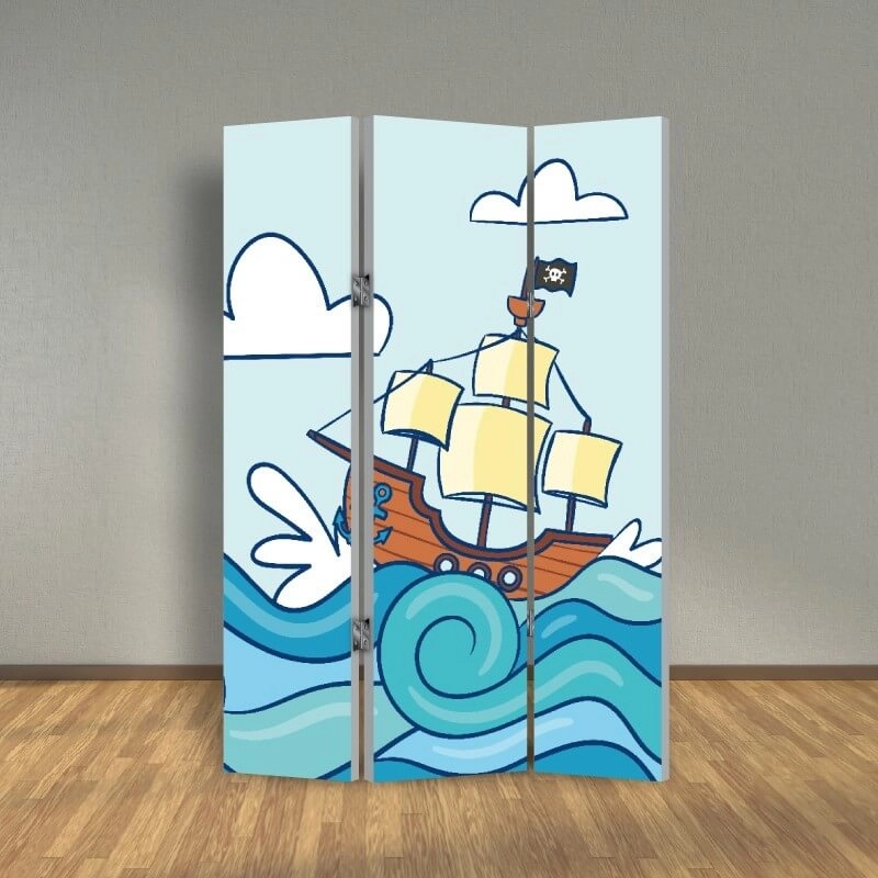 Διαρρυθμίστε έξυπνα και διακοσμήστε ταυτόχρονα τον χώρο σας με παιδικά Παραβάν Πειρατικό Καράβι στα Κύματα από το Stickerman.