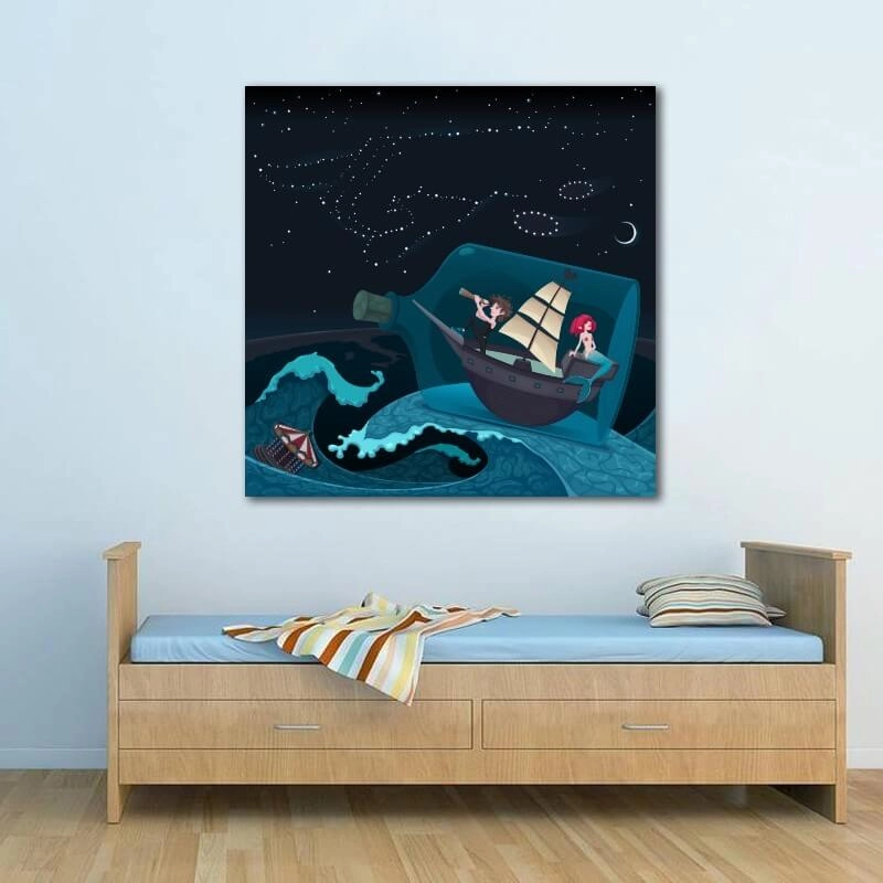 Δεν χρειάζεται να δημιουργηθεί ένα χαοτικό αποτέλεσμα υπερφορτώνοντας τους τοίχους με Πίνακας σε καμβά Μπουκάλι στη Θάλασσα, προκειμένου να τους διακοσμήσετε. Το μυστικό της επιτυχίας στους παιδικούς καμβάδες travelling, βρίσκεται σε μερικές απλές τεχνικές.