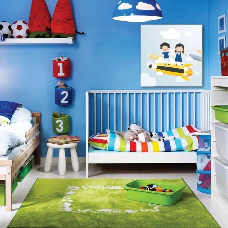 - Χαρίστε ύψος στο δωμάτιο τοποθετώντας καμβάδες με Παιδικό πίνακα ιπτάμενα μολύβια, σε κάθετη διάταξη και βάθος με την οριζόντια διάταξή τους. Συνήθως, κρεμάμε τους καμβάδες σε λάθος ύψος με αποτέλεσμα να μην αναδεικνύονται.