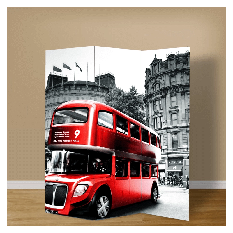 Μπορεί ένα παραβάν με διώροφο λεωφορείο σήμερα να μην είναι απολύτως απαραίτητο, αλλά πόσες φορές μπορεί να το έχετε ζηλέψει βλέποντάς το σε έναν χώρο; Ο τρόπος που διαχωρίζει ένα παραβάν με διώροφο λεωφορείο τον χώρο, αλλά και η εικόνα ή το ύφασμά του τραβάνε συνήθως το βλέμμα, κάνοντάς το να εστιάζετε πάνω του. Έτσι, το παραβάν με διώροφο λεοφωρείο αποτελεί έναν ωραίο τρόπο για να διακοσμήσετε μία γωνιά της κρεβατοκάμαράς σας ή οποιουδήποτε άλλου δωματίου θέλετε, προσφέροντάς σας παράλληλα τη δυνατότητα να εκμεταλλευτείται και τη χρηστική του αξία, εφόσον το χρειάζεστε.
