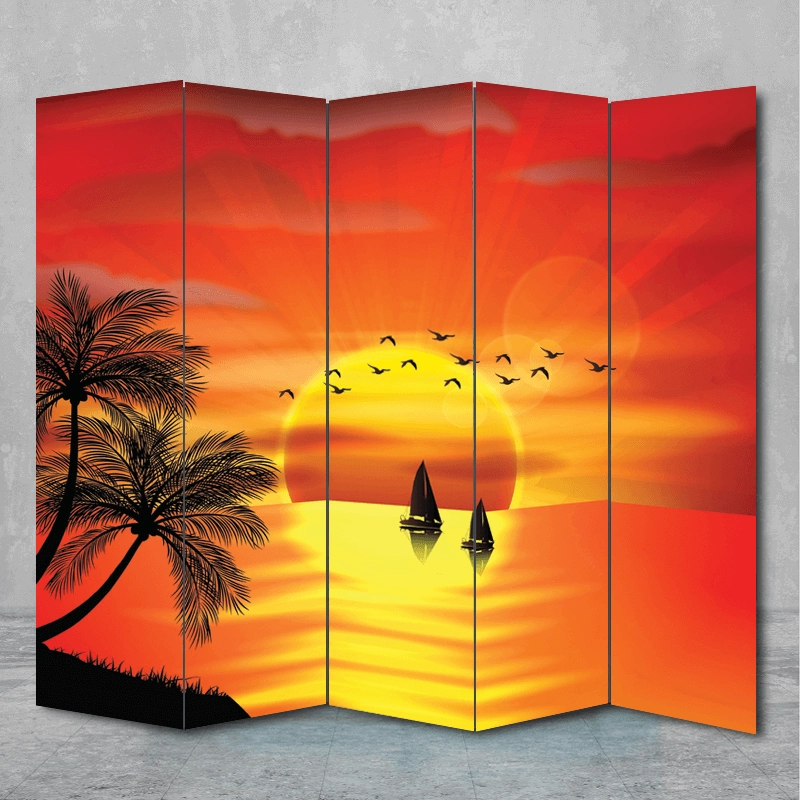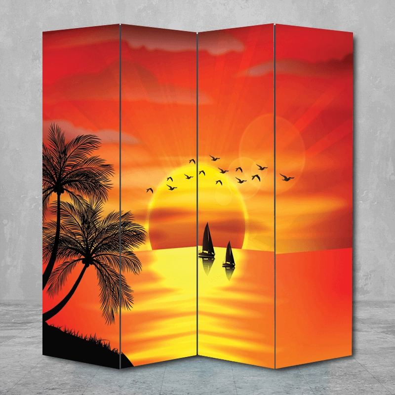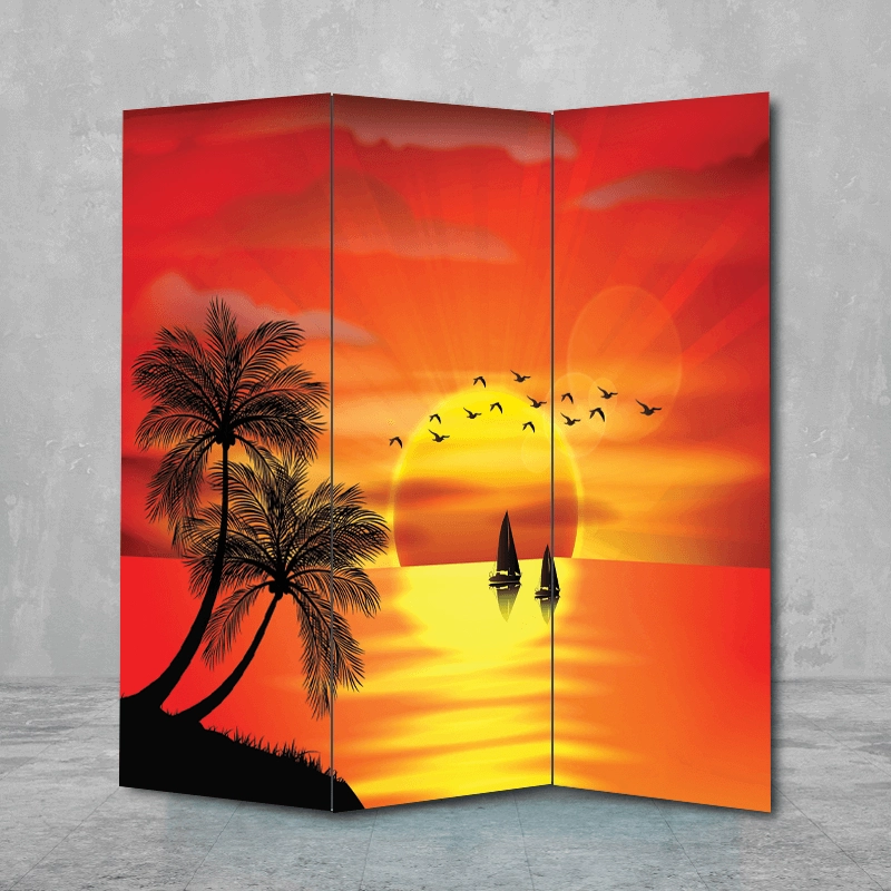 Διαρρυθμίστε έξυπνα και διακοσμήστε ταυτόχρονα τον χώρο σας με παραβάν ηλιοβασίλεμα ζωγραφική από το Stickerman.