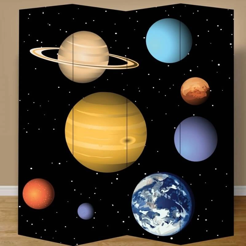 Χρησιμοποιώντας ένα παραβάν με ζωγραφίζοντας τους πλανήτες, μπορείτε να διακοσμήσετε: