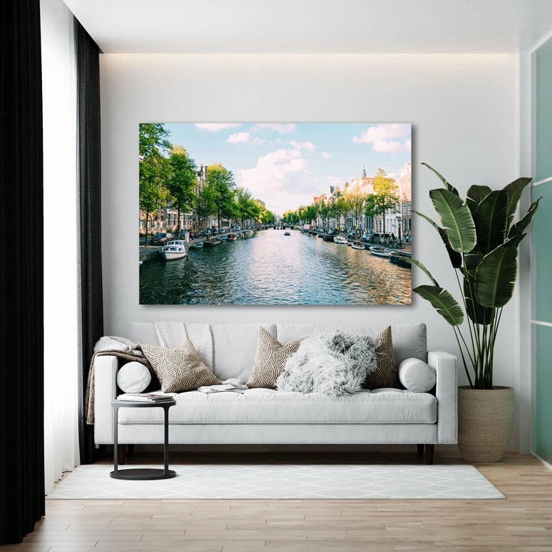Πίνακας σε καμβά για να γεμίσει χρώματα το δωμάτιο. Ο πίνακας Ποτάμι σε πόλη θα ζωντανέψει το χώρο και θα δώσει μια ευχάριστη νότα.