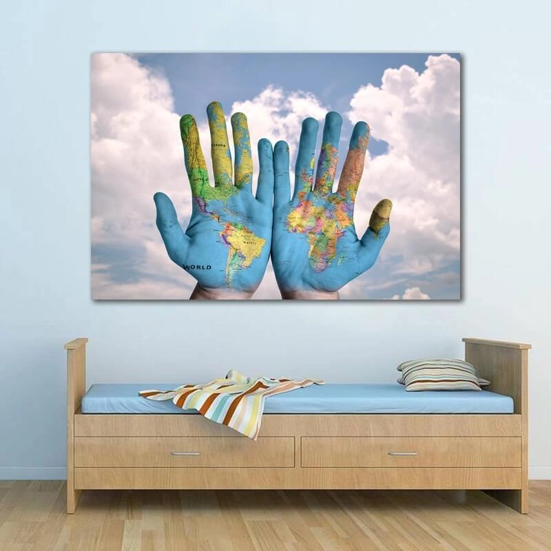 Ο Πίνακας σε καμβά Χάρτης σε Χέρια, εκφράζουν καλλιτεχνικές ανησυχίες για παιδιά και μεγάλους, φροντίζοντας με έναν ιδιαίτερο τρόπο για την αισθητική και την διακόσμηση του χώρου στον οποίο τοποθετούνται. Οι καμβάδες, αποτελούν επίσης μια πολύ εύκολη λύση, για να φροντίσετε τους τοίχους σας δίνοντας μια διαφορετική νότα στο χώρο.