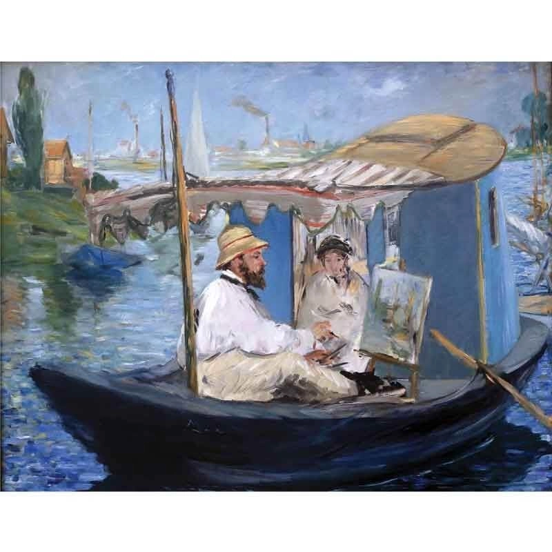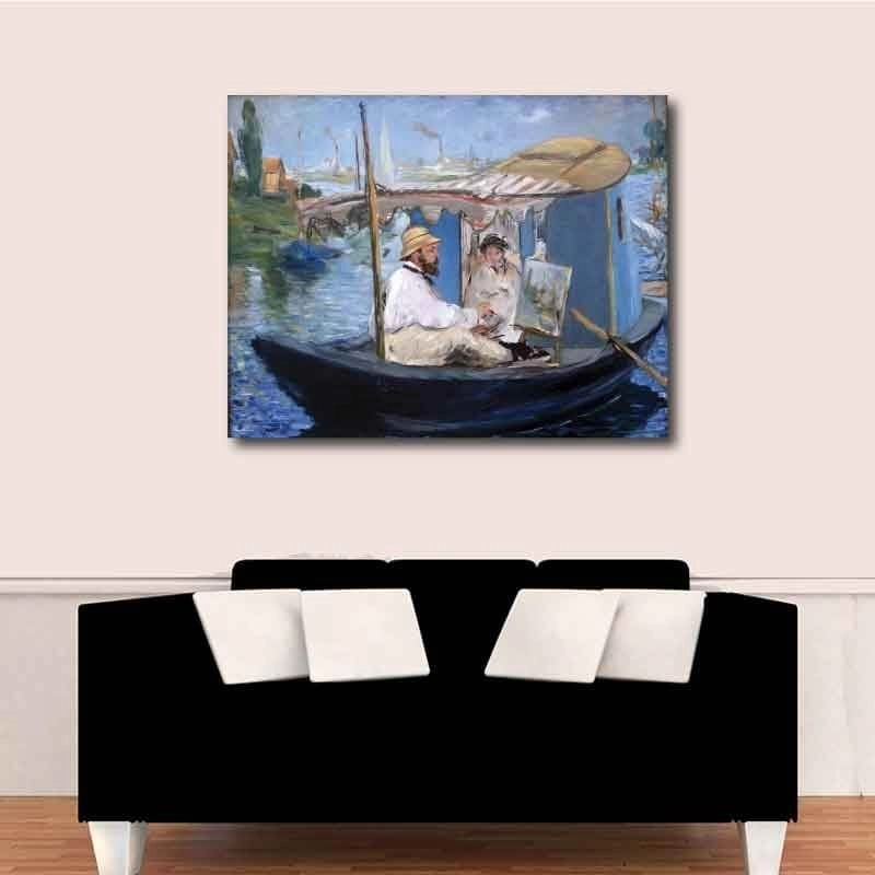 - Χαρίστε ύψος στο δωμάτιο τοποθετώντας Πίνακας σε καμβά Edouard Manet - Monet works in boat(1874), σε κάθετη διάταξη και βάθος με την οριζόντια διάταξή τους. Συνήθως, κρεμάμε τους καμβάδες σε λάθος ύψος με αποτέλεσμα να μην αναδεικνύονται.