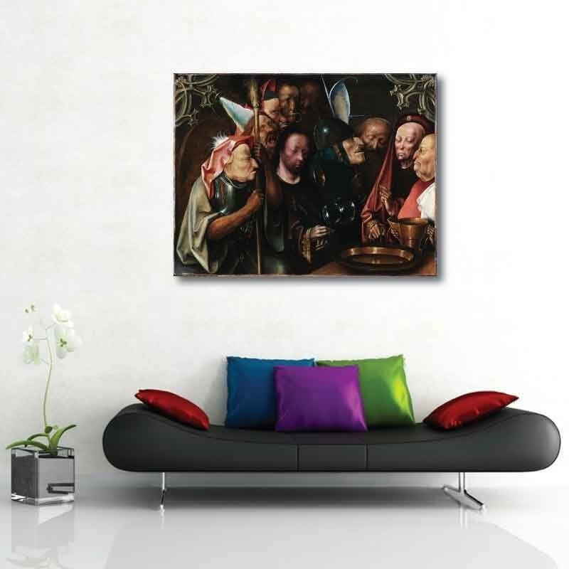 - Αποφύγετε να κρεμάσετε έναν μικρό Πίνακας σε καμβά Hieronymus Bosch - Christ Before Pilate - 1520, σε έναν μεγάλο άδειο τοίχο. Προτιμήστε να τον τοποθετήσετε ανάμεσα σε δύο έπιπλα ή ακόμη και δύο παράθυρα.