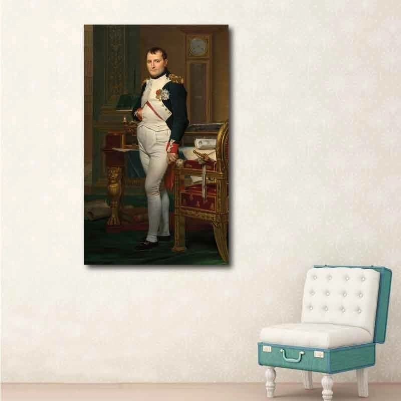 - Αποφύγετε να κρεμάσετε έναν μικρό Πίνακας σε καμβά Jacques Louis David - The Emperor Napoleon in His Study at the Tuileries - 1812, σε έναν μεγάλο άδειο τοίχο. Προτιμήστε να τον τοποθετήσετε ανάμεσα σε δύο έπιπλα ή ακόμη και δύο παράθυρα.