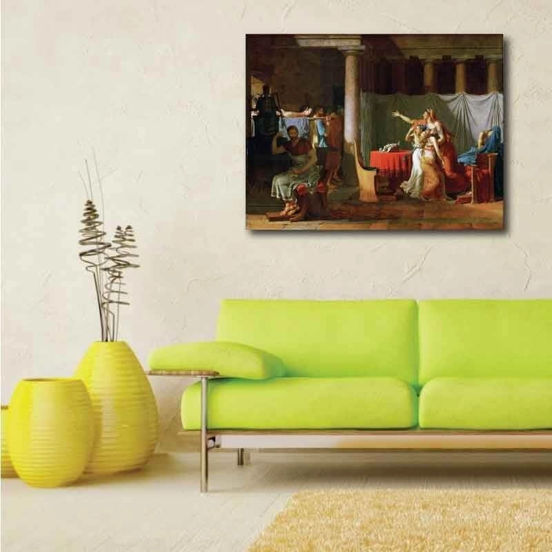 - Αποφύγετε να κρεμάσετε έναν μικρό Πίνακας σε καμβά Jacques Louis David - The Lictors Bring to Brutus the Bodies of His Sons - 1789, σε έναν μεγάλο άδειο τοίχο. Προτιμήστε να τον τοποθετήσετε ανάμεσα σε δύο έπιπλα ή ακόμη και δύο παράθυρα.