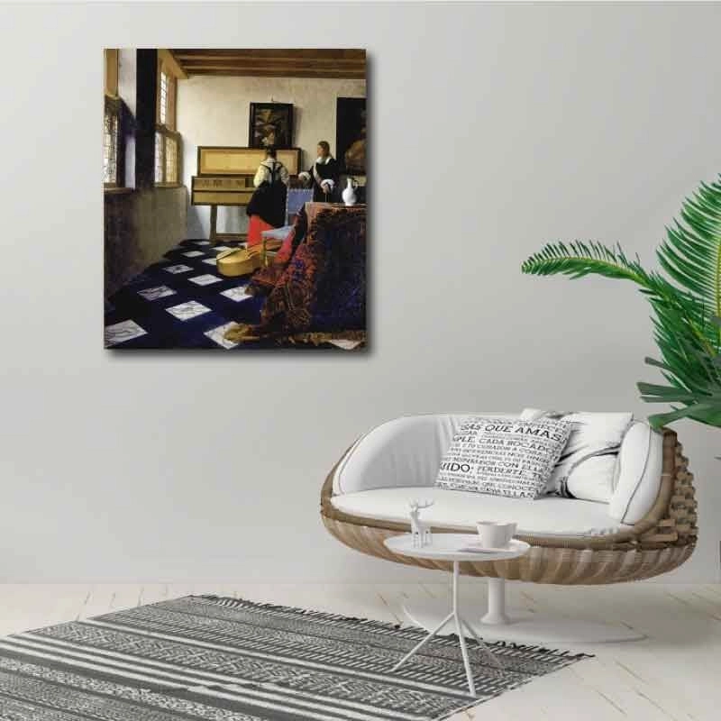 - Χαρίστε ύψος στο δωμάτιο τοποθετώντας Πίνακας σε καμβά Johannes Vermeer - The Music Lesson - 1662, σε κάθετη διάταξη και βάθος με την οριζόντια διάταξή τους. Συνήθως, κρεμάμε τους καμβάδες σε λάθος ύψος με αποτέλεσμα να μην αναδεικνύονται.